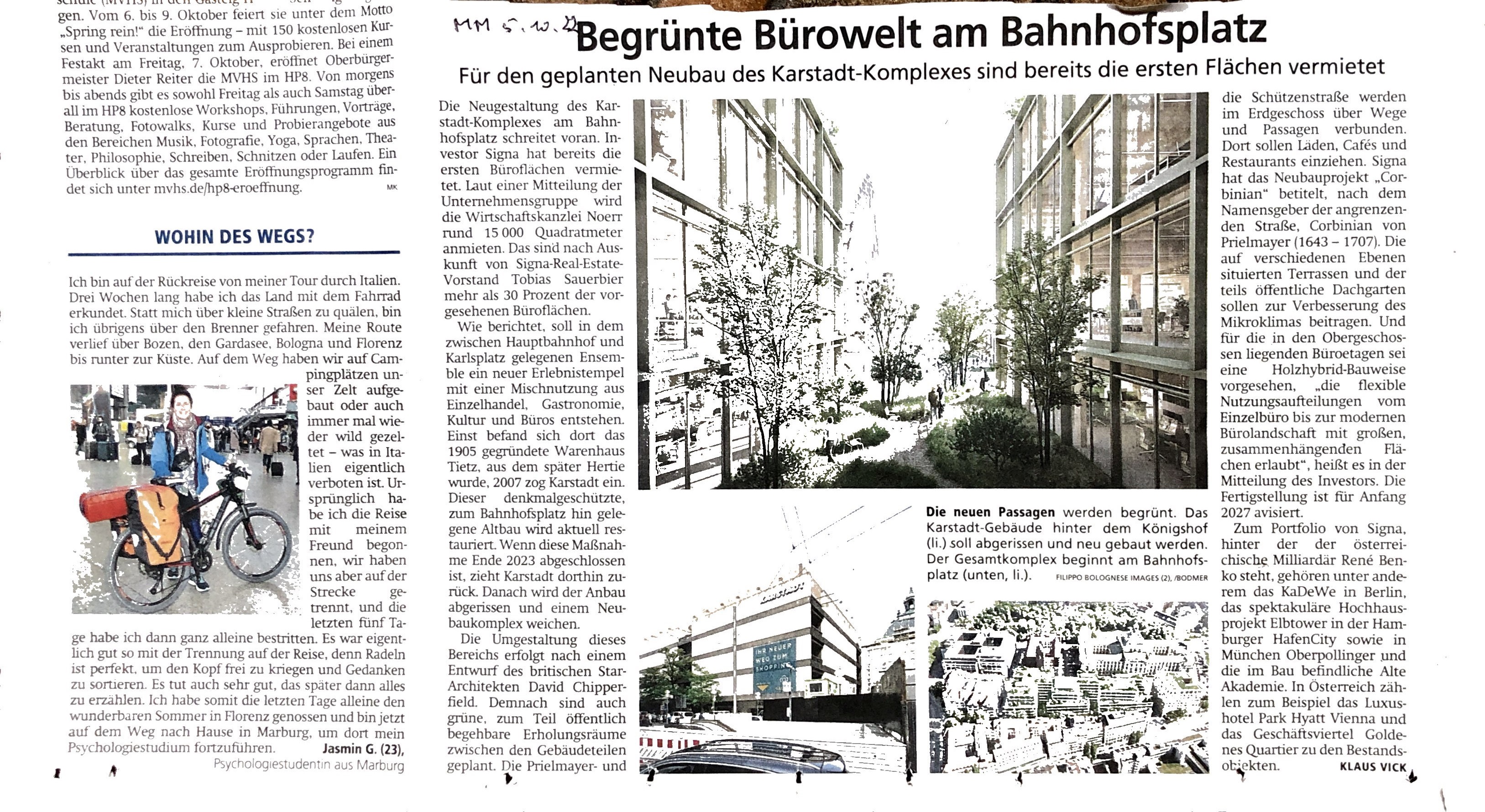 Begrünte Bürofläche am Bahnhbofsplatz, erschienen im MM am 5.10.2022