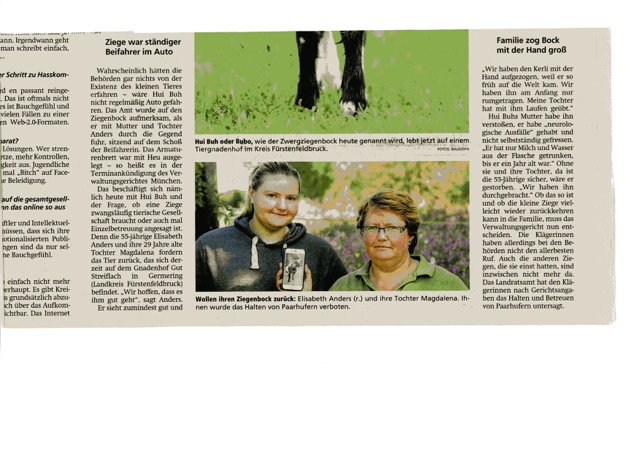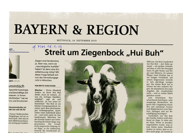 ... was für die Gerichte wichtig ist. Lesen Sie hierzu den Artikel vom Münchner Merkur über den Ziegenbock Hui-Buh der großes Aufsehen erregt hat.